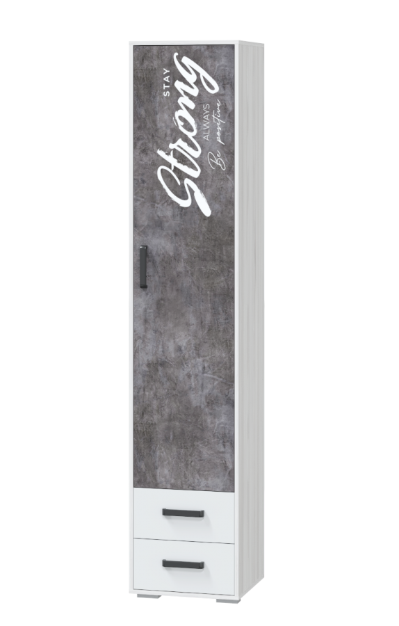 Шкаф для платья и белья с 2 ящиками Оливер (Ясень анкор светлый/ Камень темный с фотопечатью)