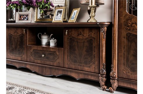 Гостиная Илона в темном цвете станет истинным украшением и гордостью Вашего дома. Создается впечатление, что она вобрала в себя внешний лоск и всю прелесть старины, сохранив при этом все изящество в простоте.