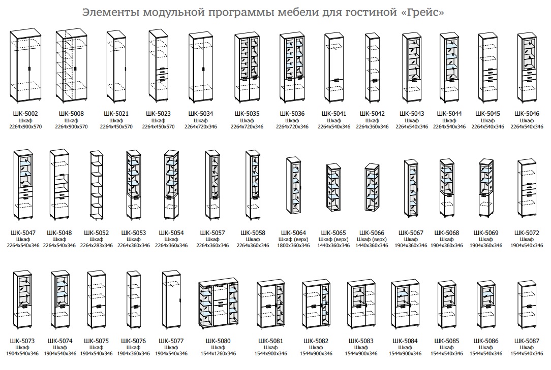 Широкий выбор модулей позволит подобрать оригинальные композиции под любой стиль и любые габариты комнаты: будь то небольшая гостиная или солидный холл.