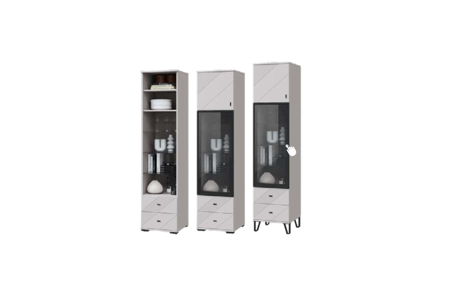 Шкаф-витрина с одной стеклянной дверкой и двумя ящиками модульной программы «Кашемир».
