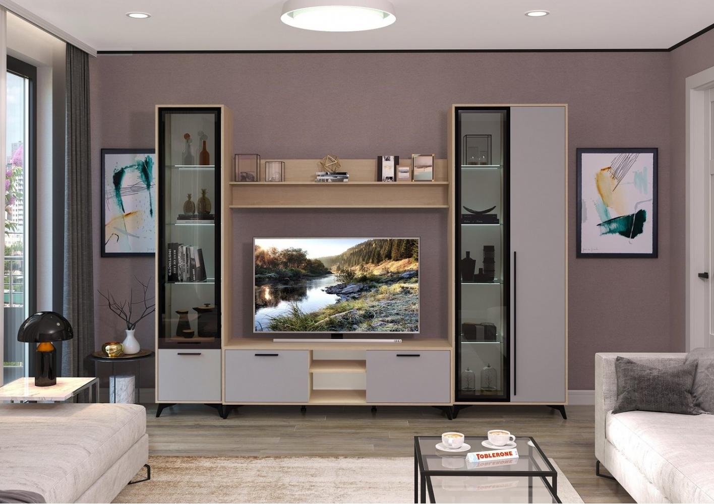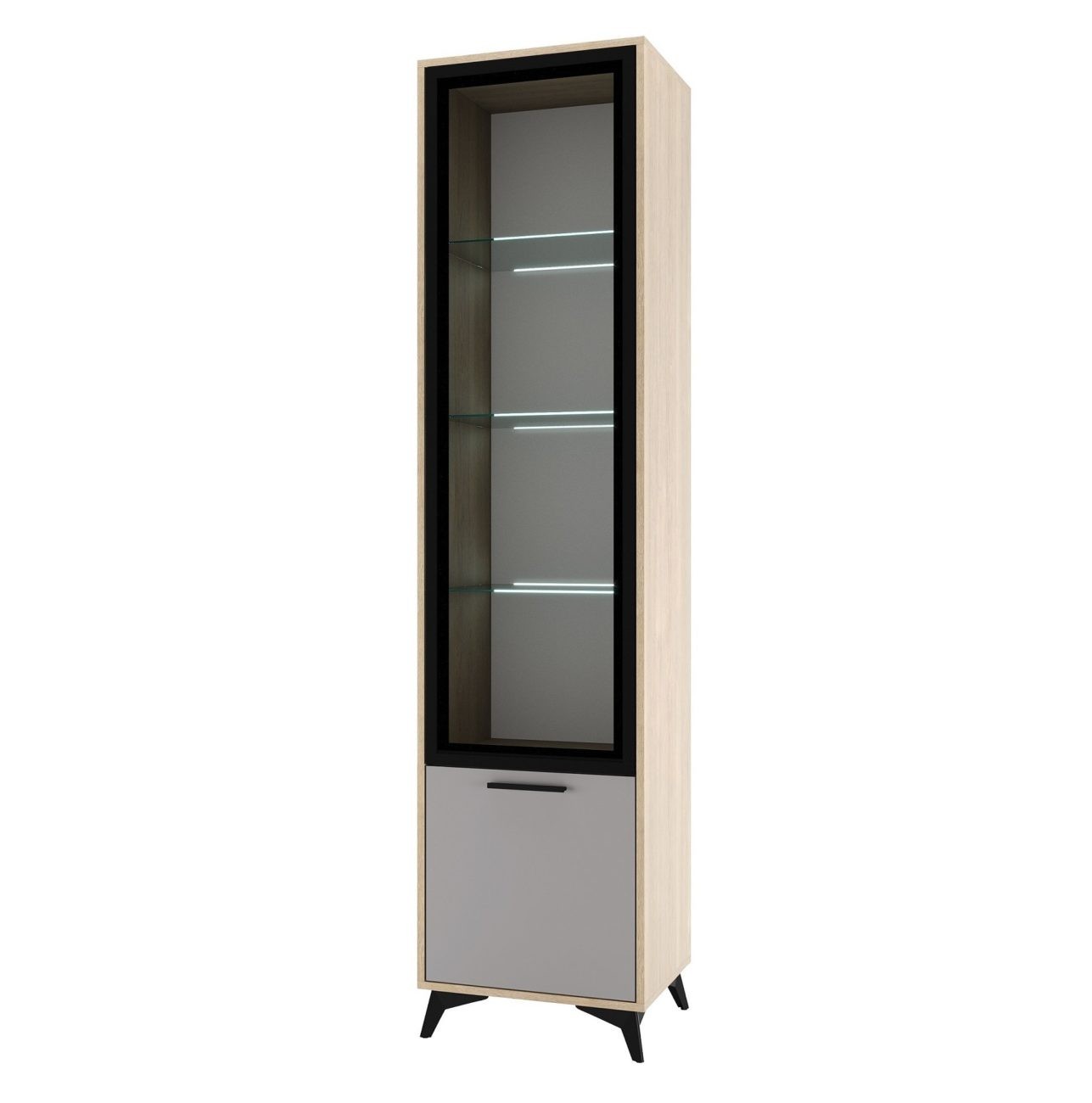 Пенал-витрина 480 1В1С Ева (Дуб экспресив песочный/ Рейн)