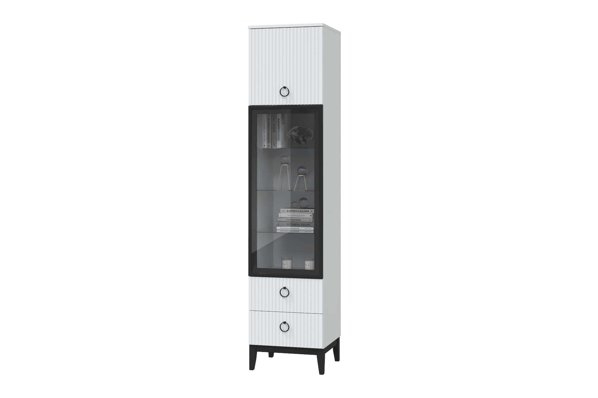 Шкаф-витрина с 1 стеклянной дверкой и 2 ящиками Шарлиз 450 (Белый снег софт)