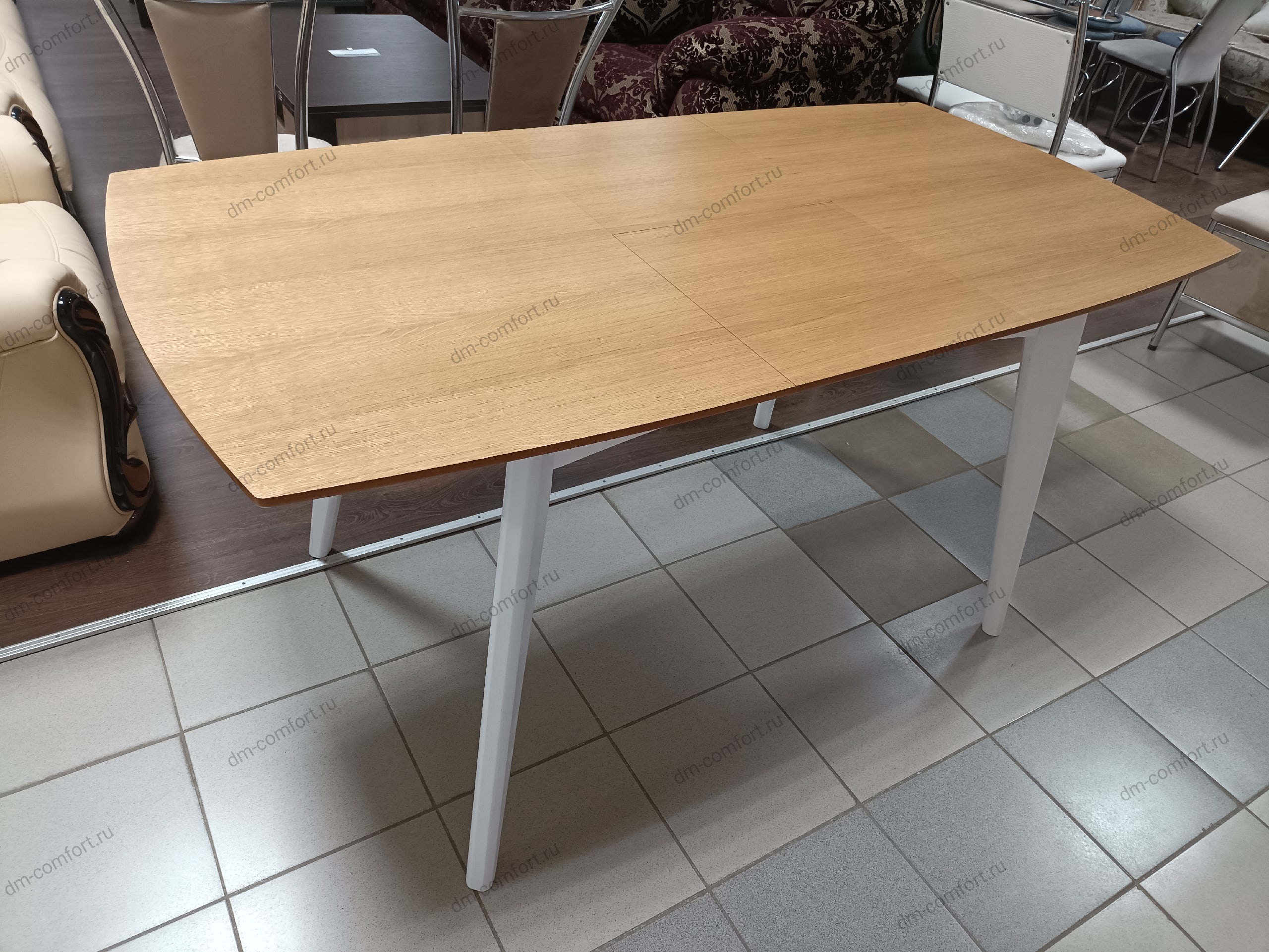 Современный раскладной стол Моника белорусской фабрики «Пинскдрев» гармонично впишется практически в любой интерьер кухни, столовой или гостиной.