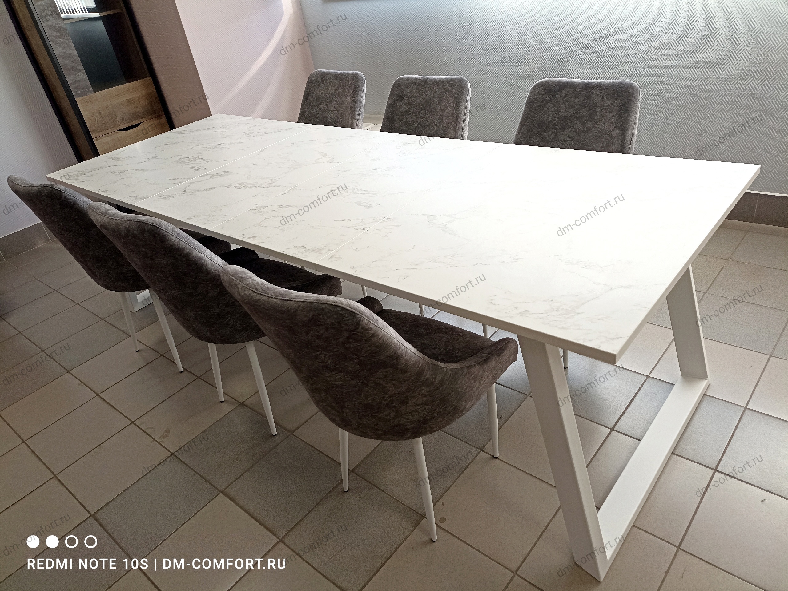 Стол Персей Egger 1620(+500+500)*950 (Мрамор белый, белый глянец)
