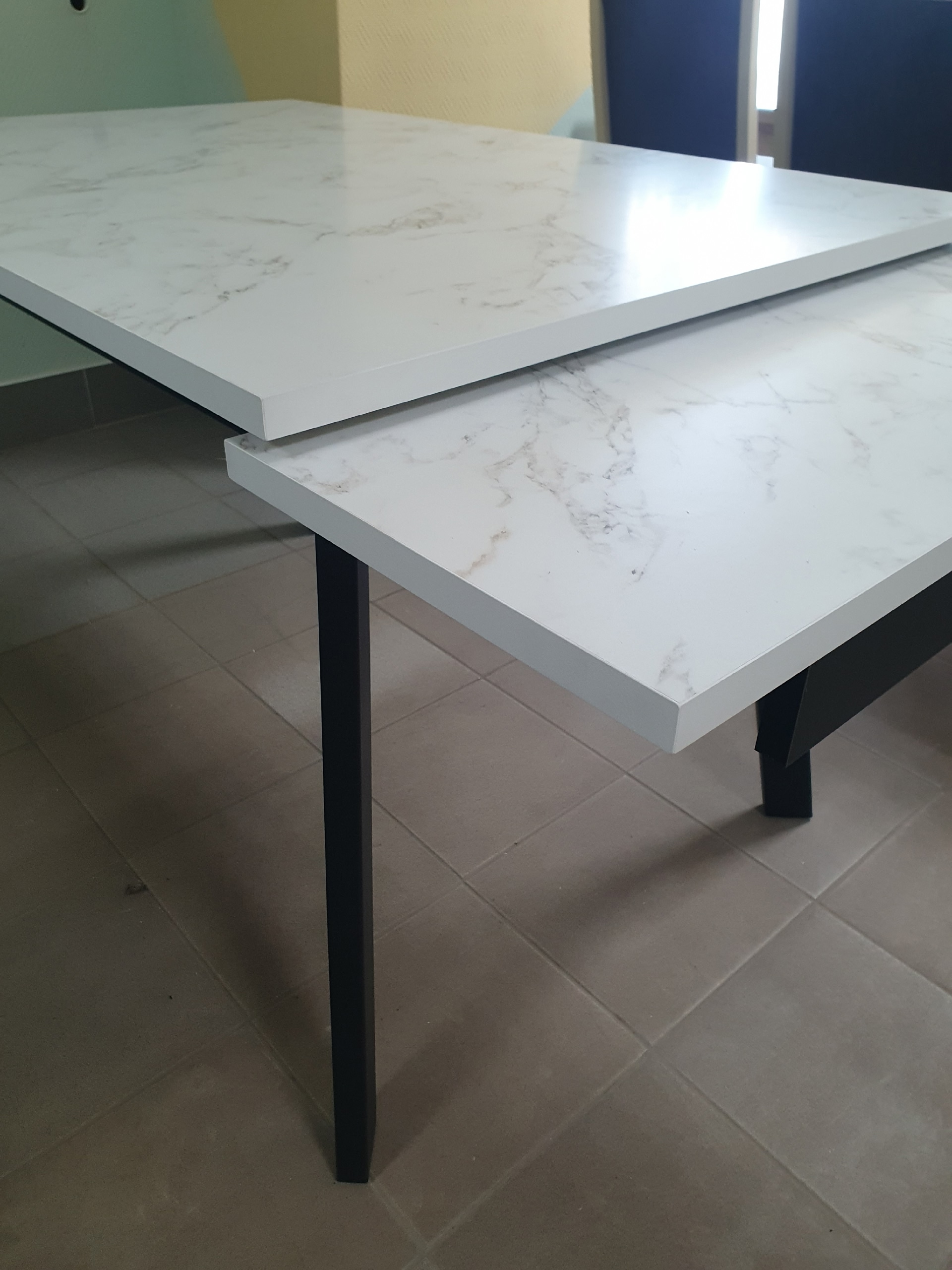 Трансформация стола выполняется вытягиванием и выталкиванием вверх вставок с торцов стола, что совершенно не требует особых усилий!