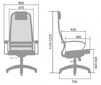 -Спинка: высокая с мягким подголовником, черное полимерное покрытие каркаса, высота 850 мм, ширина 475 мм