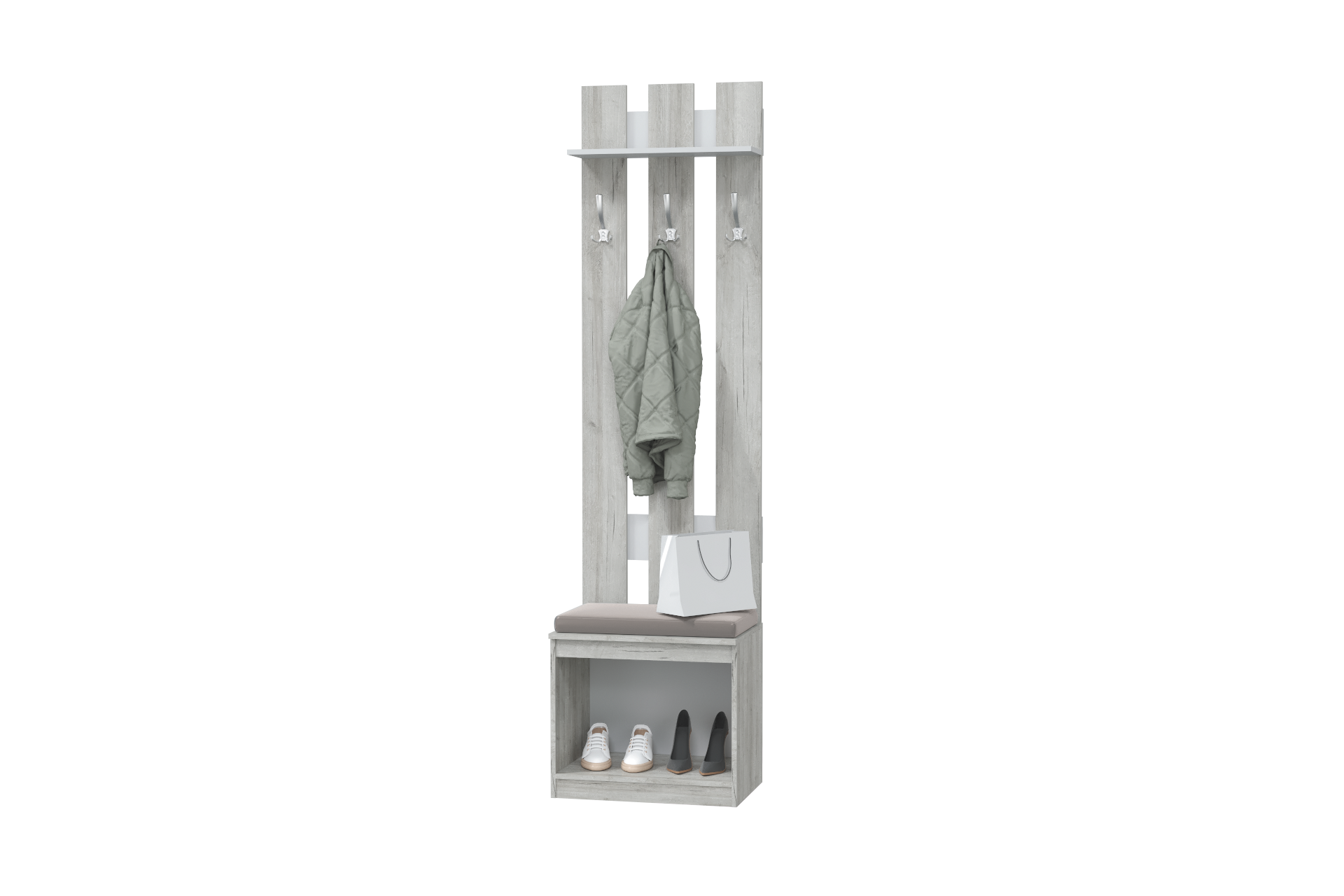 Вешалка решетка + Тумба (с мягким элементом) Лори (дуб серый/белый)