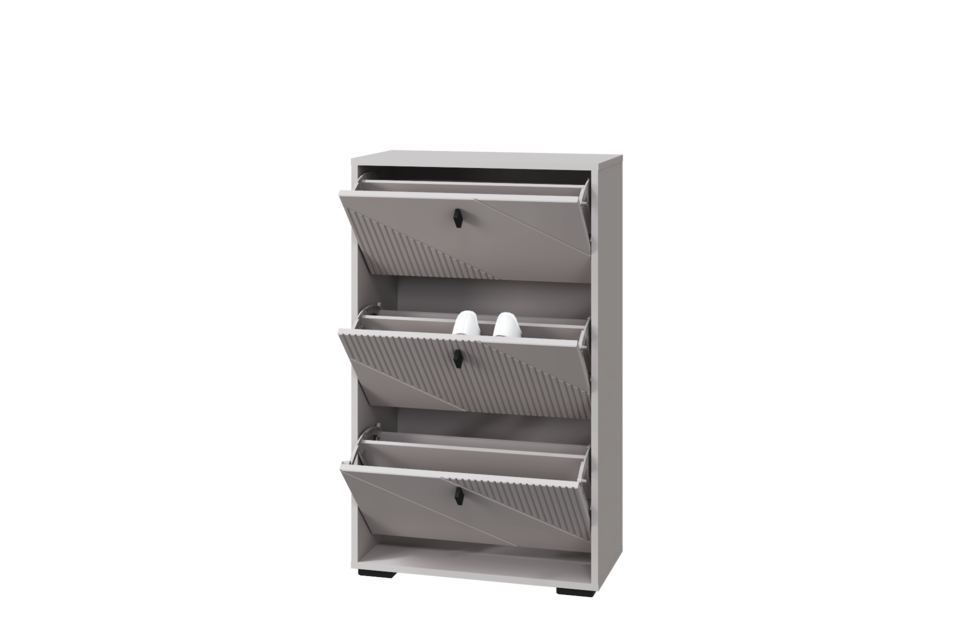 Обувница Кашемир с тремя отделениями позволяет хранить обувь на закрывающихся полках, сохраняя порядок и экономя место в прихожей.