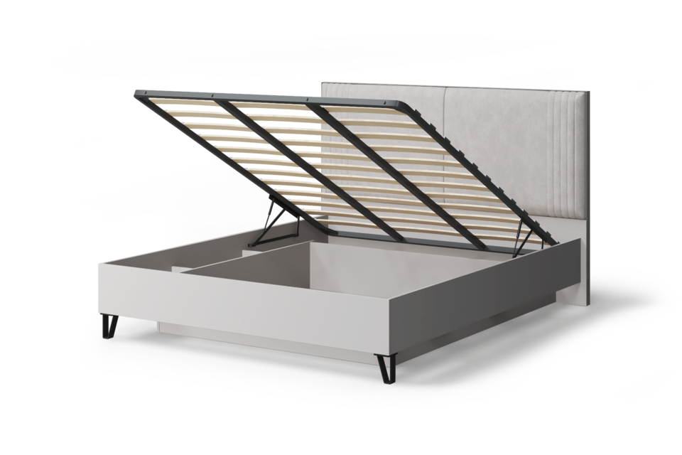 Кровать Наоми с царгами ЛДСП и мягким изголовьем c подъемным механизмом является частью модульной спальни Наоми.