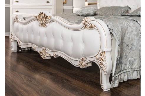 Кровать Натали (Эра) — роскошная двуспальная кровать в стиле барокко представлена в белом глянцевом исполнении с мягкими вставками на изголовье и изножье в обрамлении изящной позолоченной лепнины. Изголовье и изножье кровати сделано из экокожи с каретной стяжкой. В комплекте идёт ортопедическое основание. Кровать представлена в двух вариантах размеров спальных мест: 160 х 200 и 180 х 200 см. Матрас приобретается дополнительно.