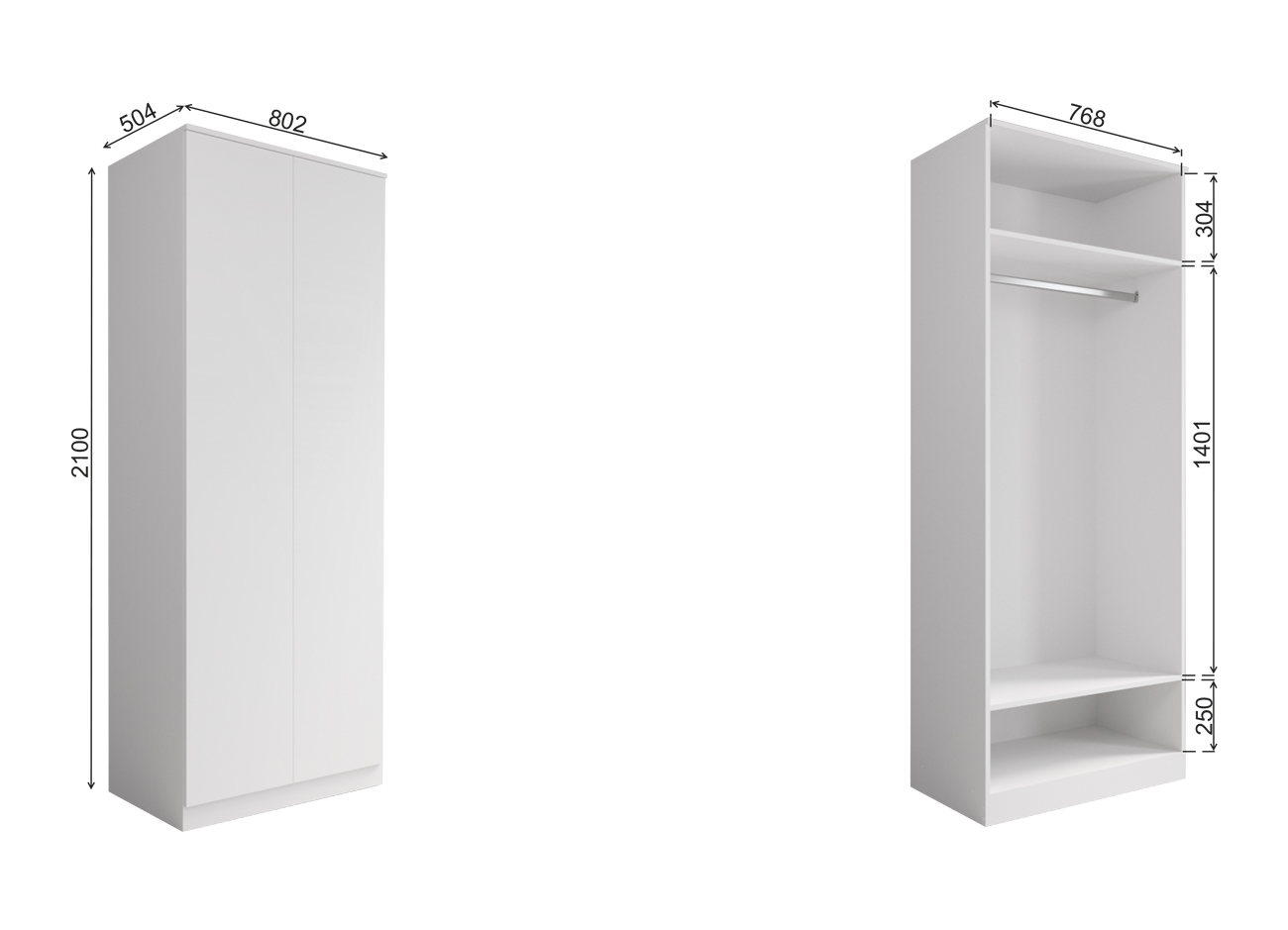 Шкаф 2-дверный Мори МШ 800.1 (Белый)