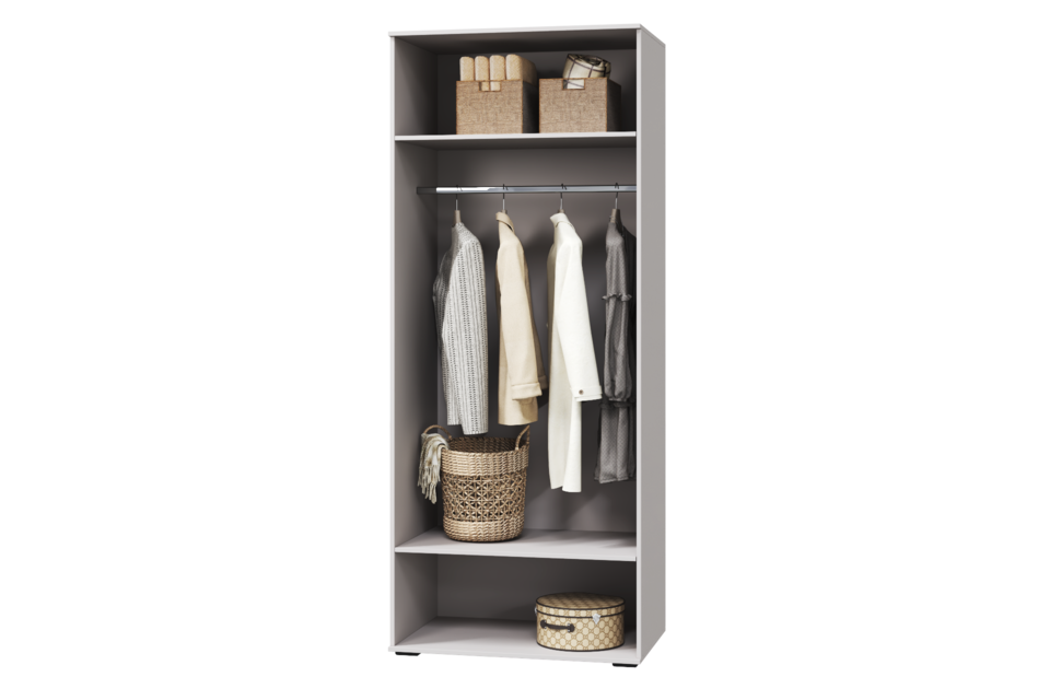 Внутри шкафа установлена штанга для одежды и вкладные полки. Благодаря такому решению можно выбрать функционал шкафа: либо вешать на штангу одежду, либо хранить вещи на полках.