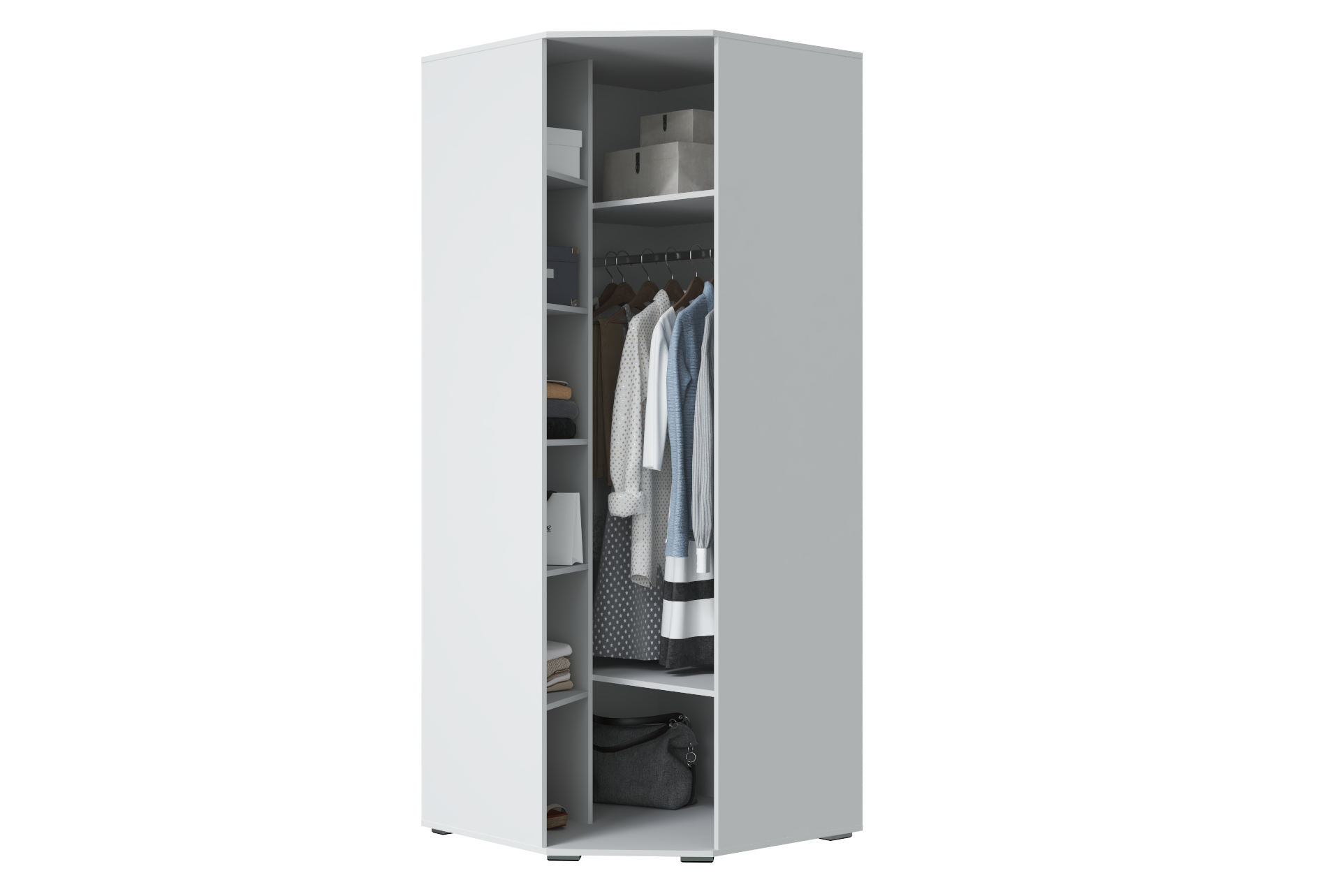 Шкаф угловой Шарлиз станет гармоничным дополнением интерьера любой комнаты. За распашной дверью находится штанга для вешалок-плечиков. Антресольная и боковые полки созданы для бережного хранения сложенной одежды, белья, различных аксессуаров, обуви или каких-то коробок с важными вещами.