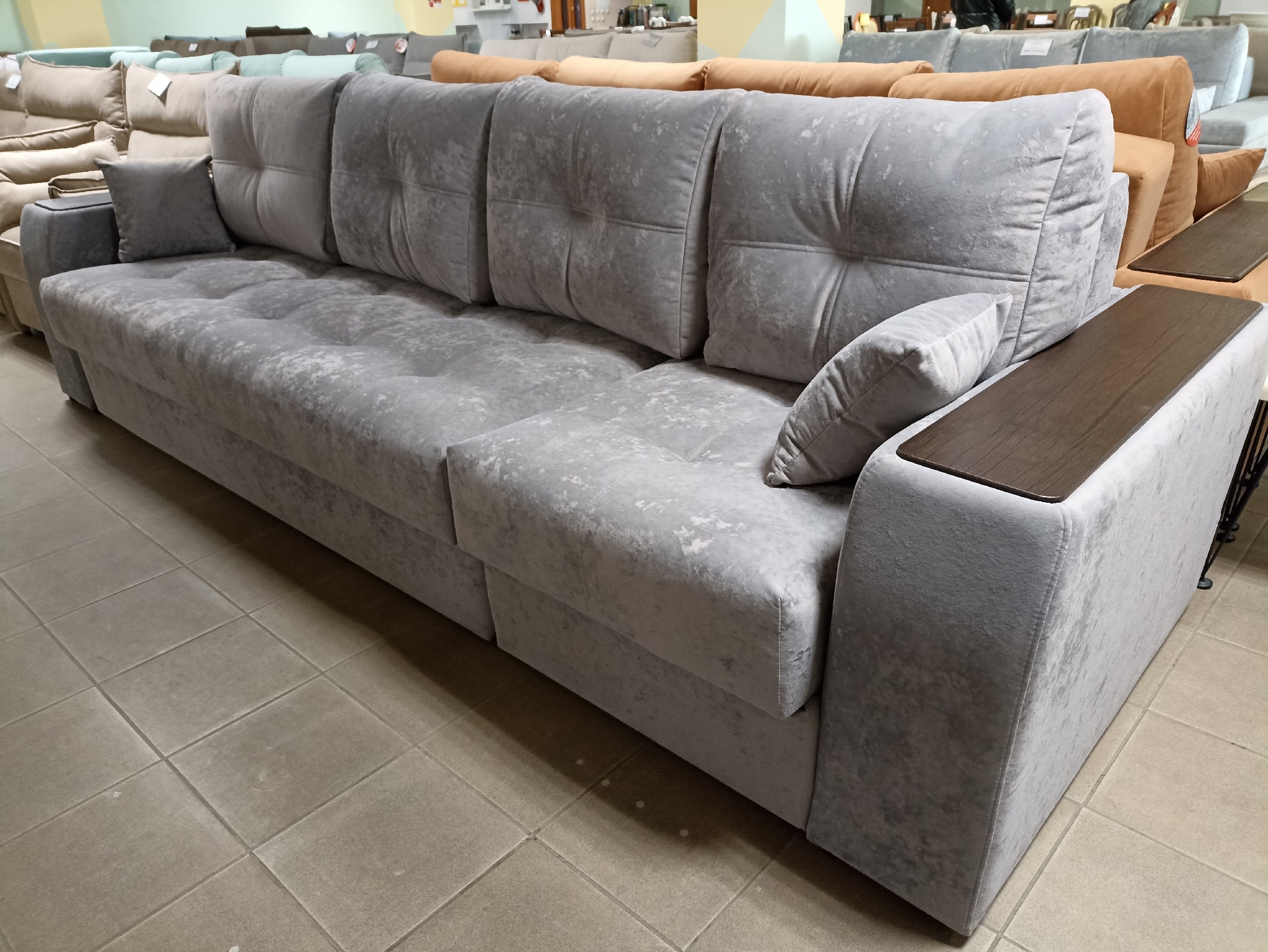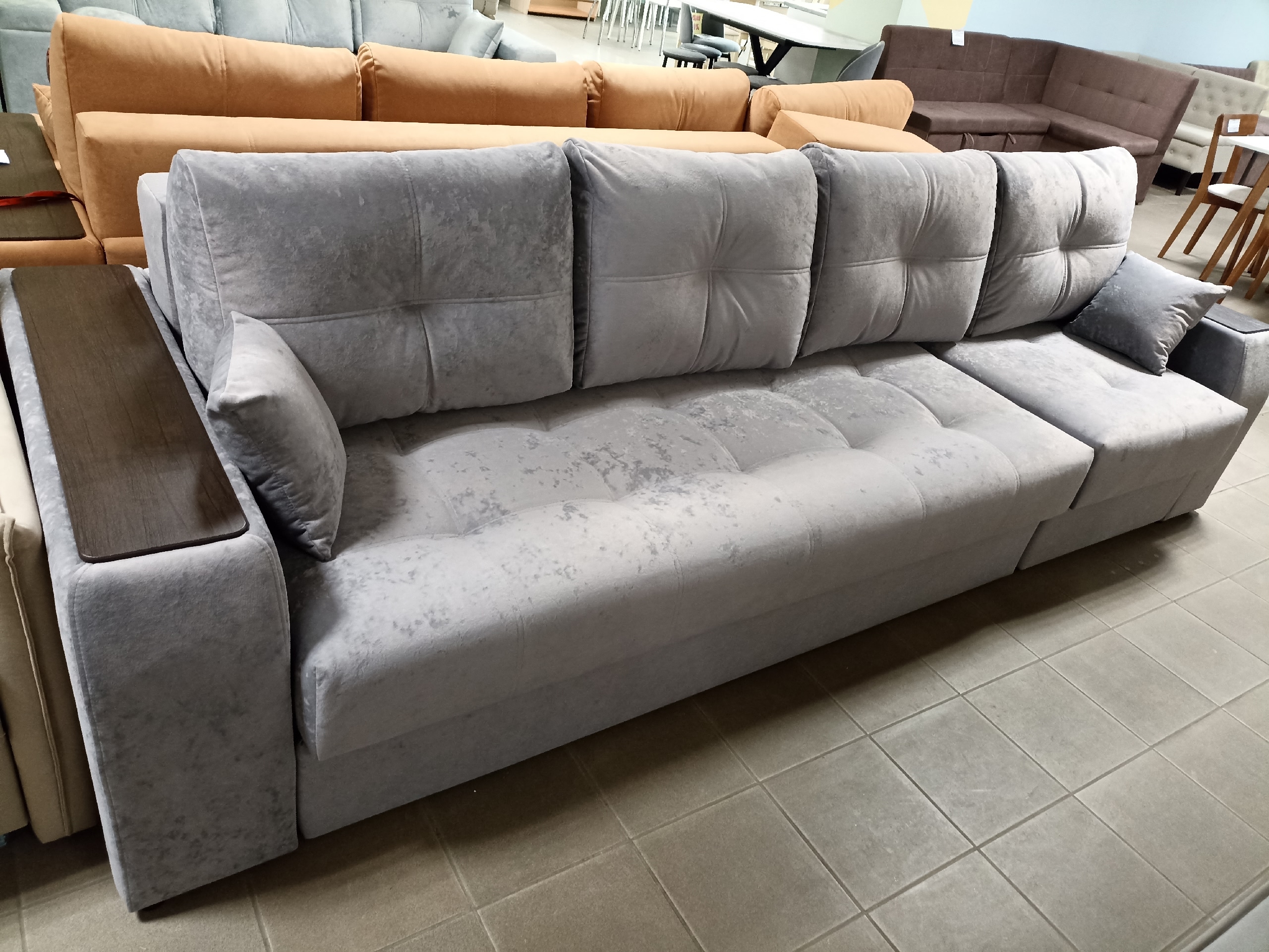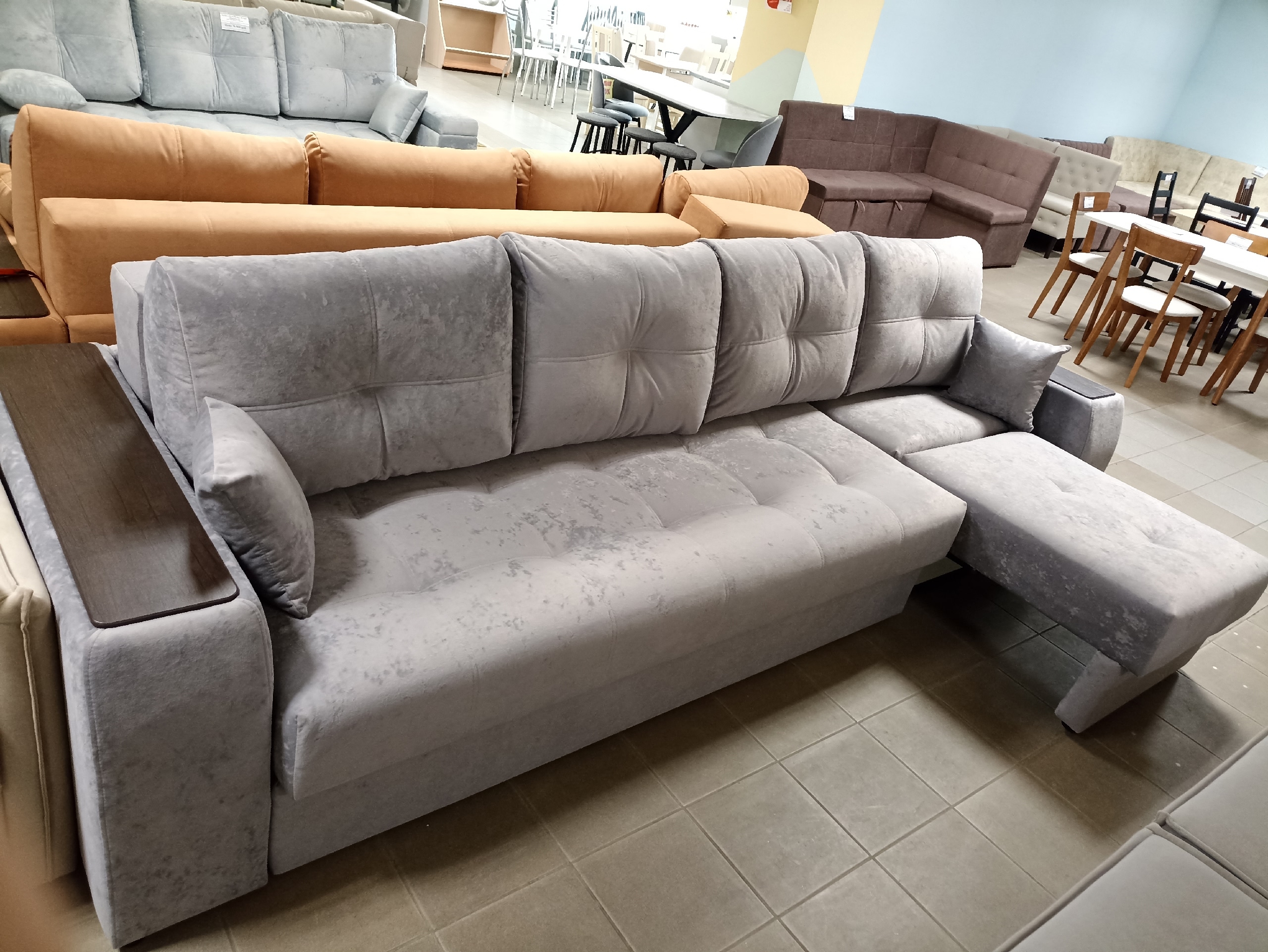 Благодаря наличию в конструкции шагающего кресла, можно легко превратить его в прямой или угловой диван для дома. Оттоманка универсальная, ставится с любой стороны дивана.