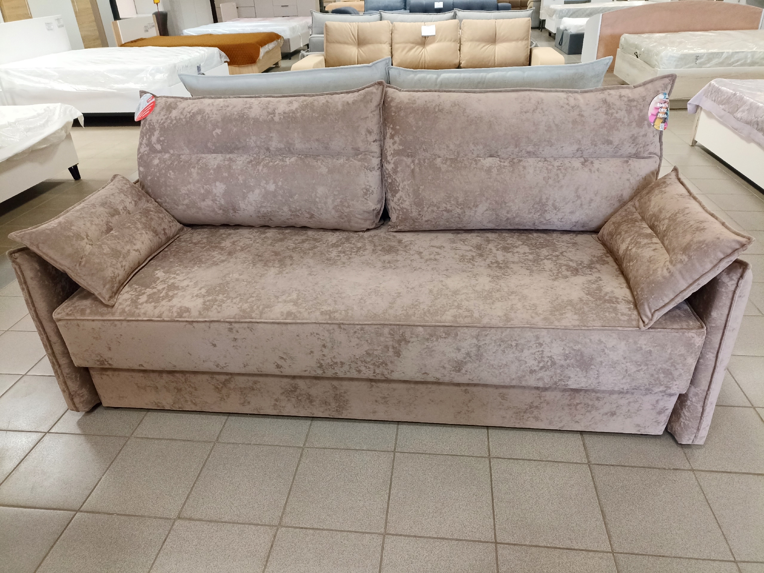 Механизм трансформации: тик-так. Вы не поцарапаете напольное покрытие при раскладывании дивана и можете быть спокойны при его эксплуатации.