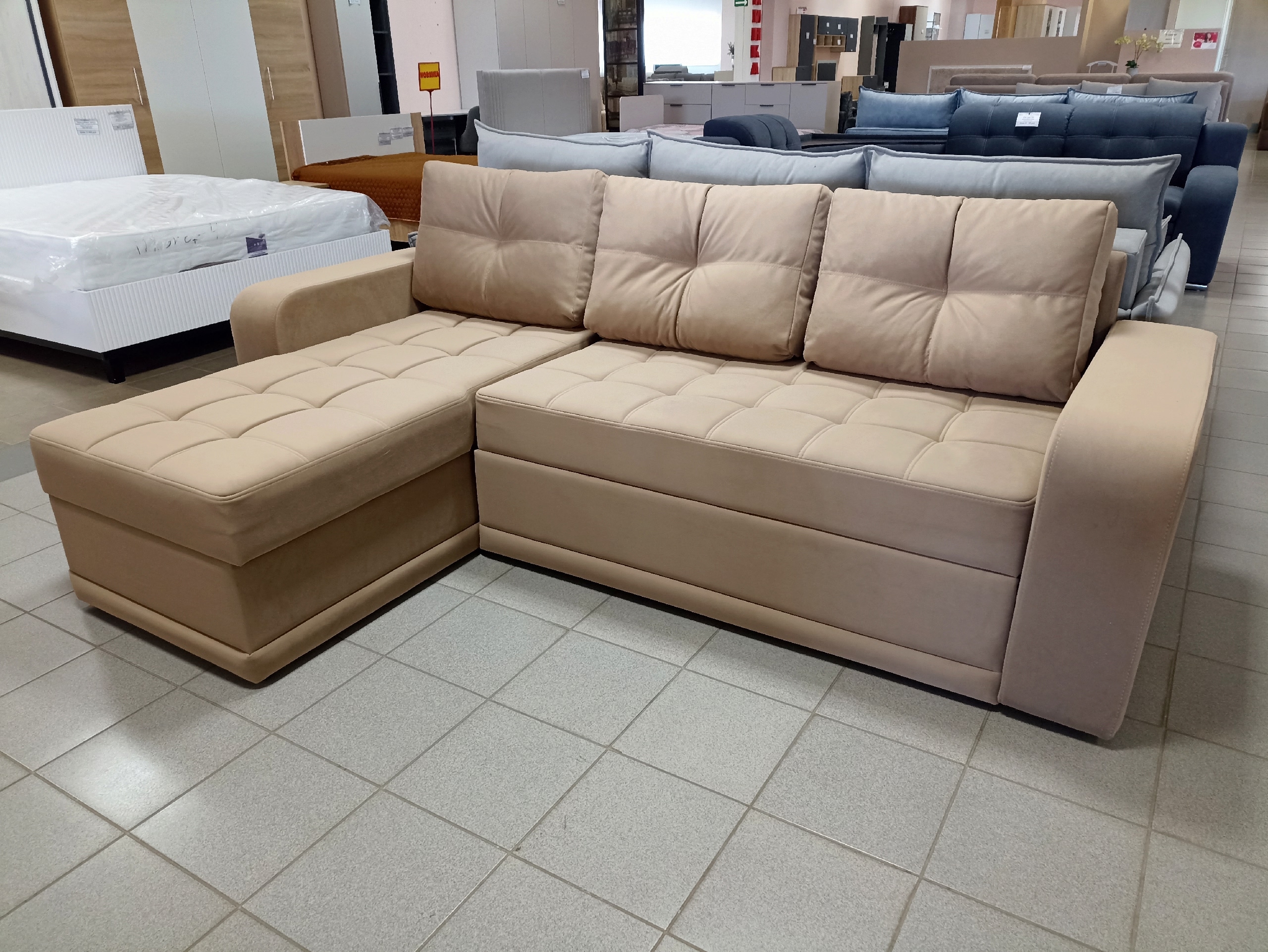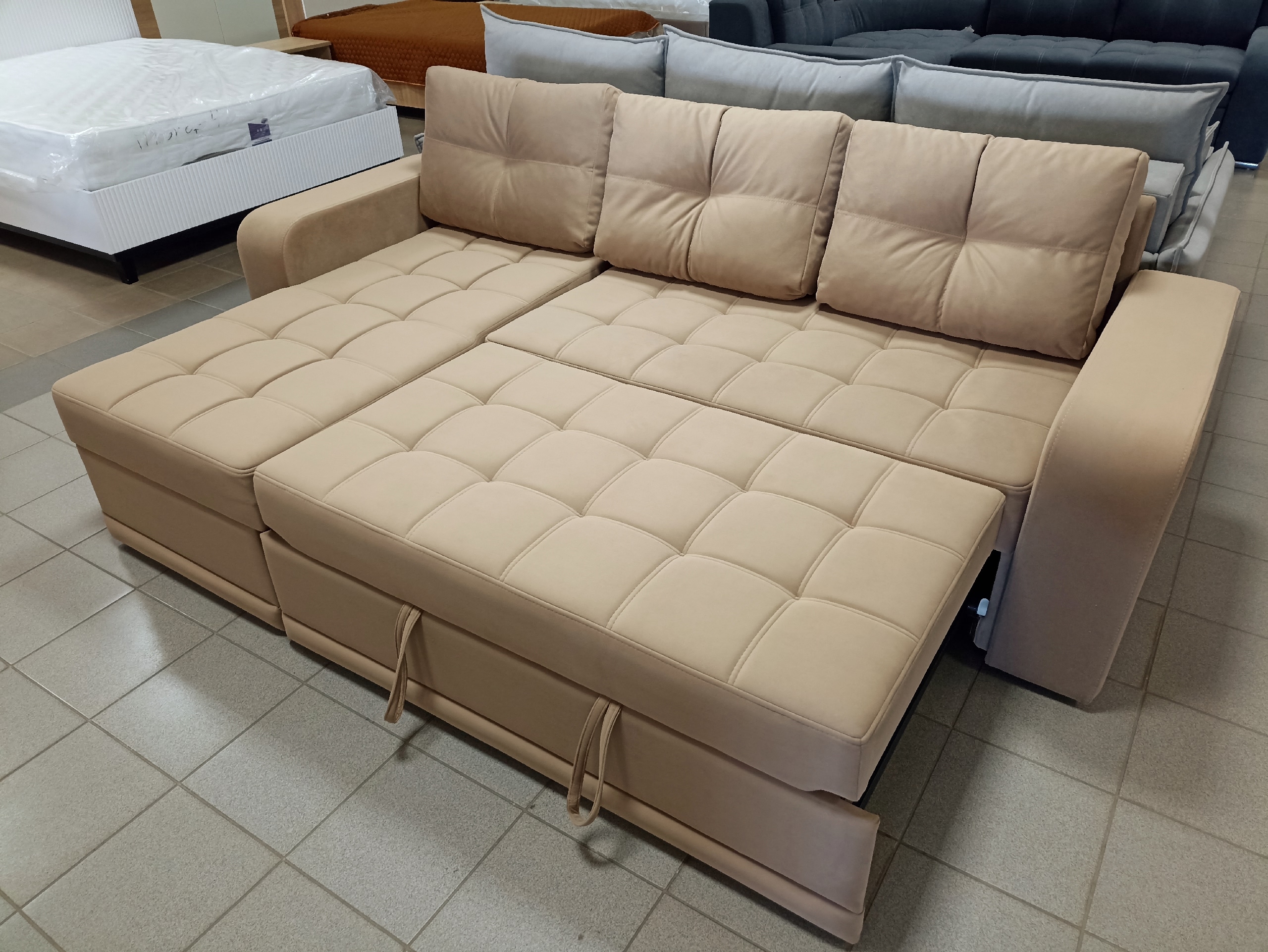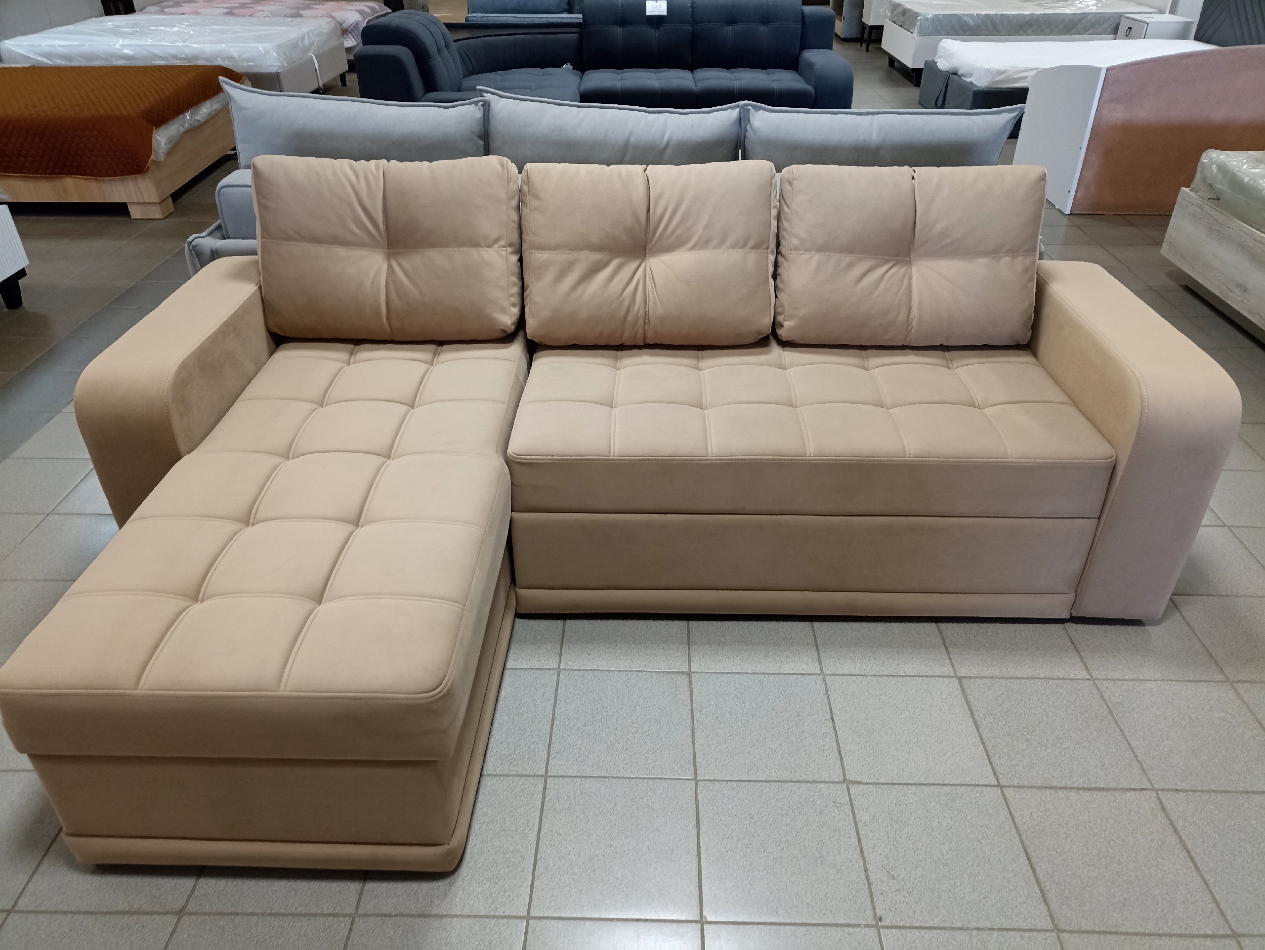 Современный диван Квадро с оттоманкой в светло-бежевом цвете станет идеальным дополнением к интерьеру вашего дома.